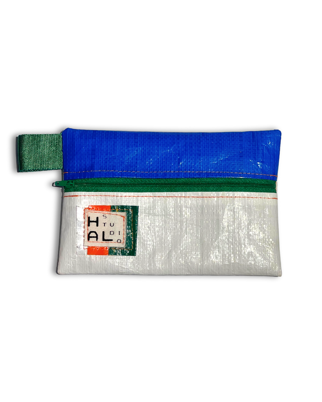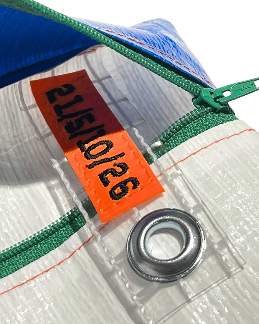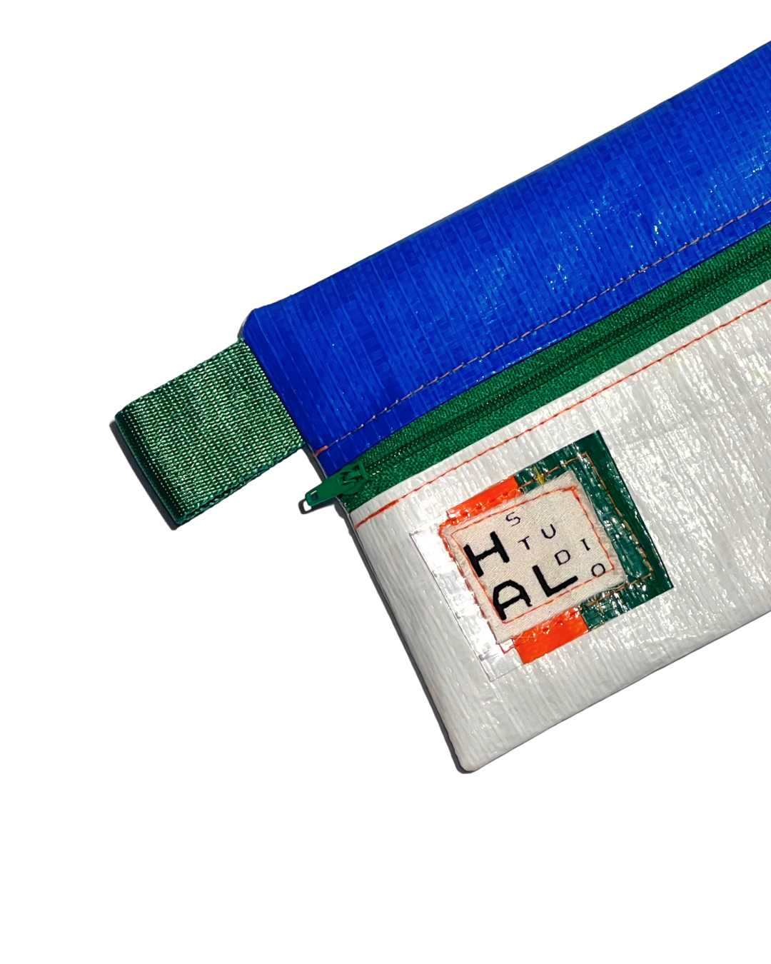 Çanta etiketi, yine atık kumaşlar üzerine serigraf baskı yöntemiyle üretilir ve Hal Studio’nun üretim sürecinde ortaya çıkan branda artıkları üzerine dikilerek tamamlanır.