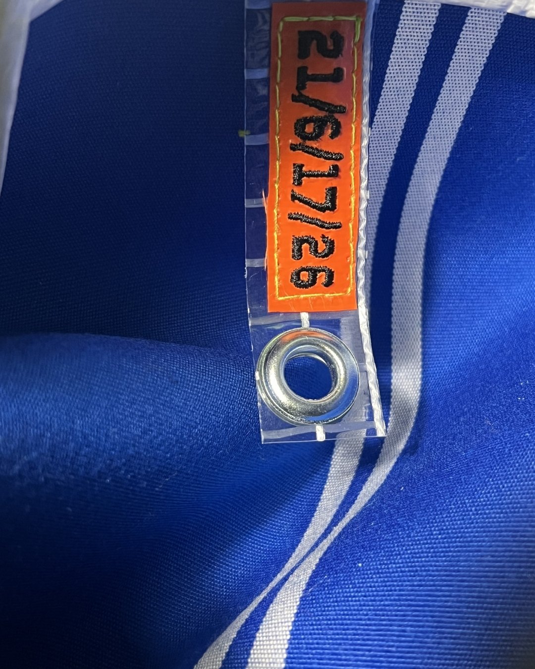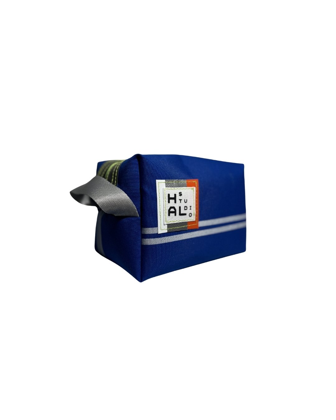 Çanta etiketi, yine atık kumaşlar üzerine serigraf baskı yöntemiyle üretilir ve Hal Studio’nun üretim sürecinde ortaya çıkan branda artıkları üzerine dikilerek tamamlanır.