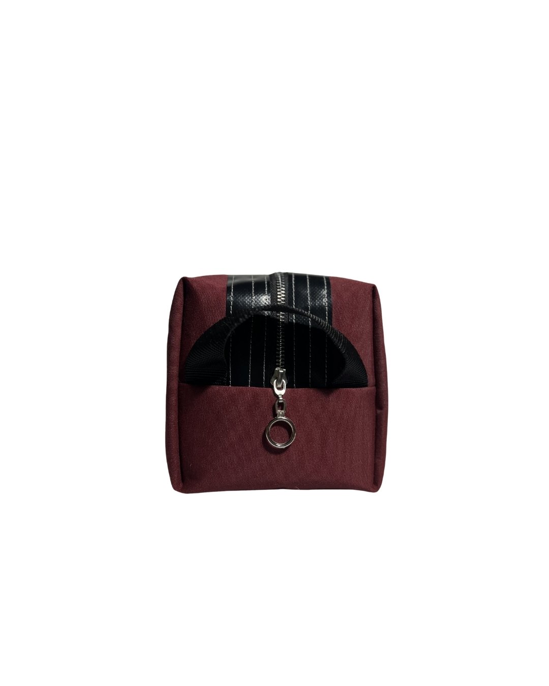 Makyaj çantası Kartal Branda’nın üretimlerinden arta kalan ve atık haline gelmiş branda parçalarının yeniden değerlendirilmesiyle üretilmiştir. Her parça elde kesilir, temizlenir ve yeniden kurgulanır. Bu nedenle hiçbir ürün birebir aynı değildir.